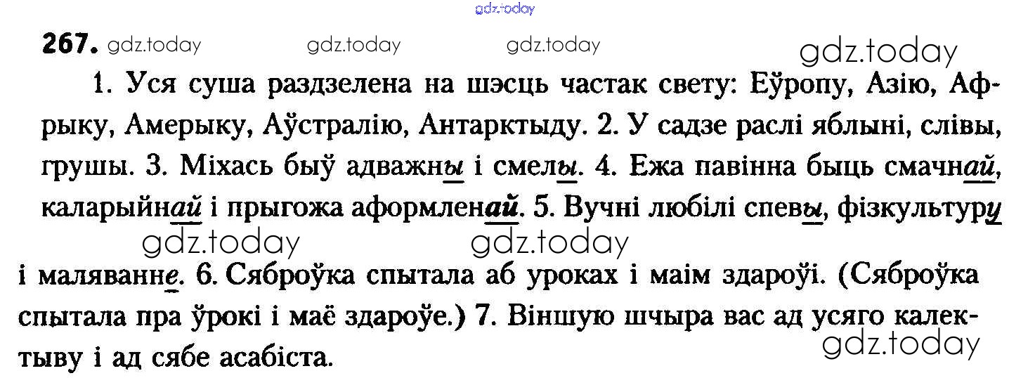На страницах сайта gdz.today вы найдете учебный и вспомогательный материал, направленный на улучшения знаний школьной программы. ГДЗ - онлайн мир знаний Рашальнік да практыкаванняў 267 Учебнику по Белорусскому языку для 8 класса Бадзевіч, Саматыя Национальный институт образования 2015
