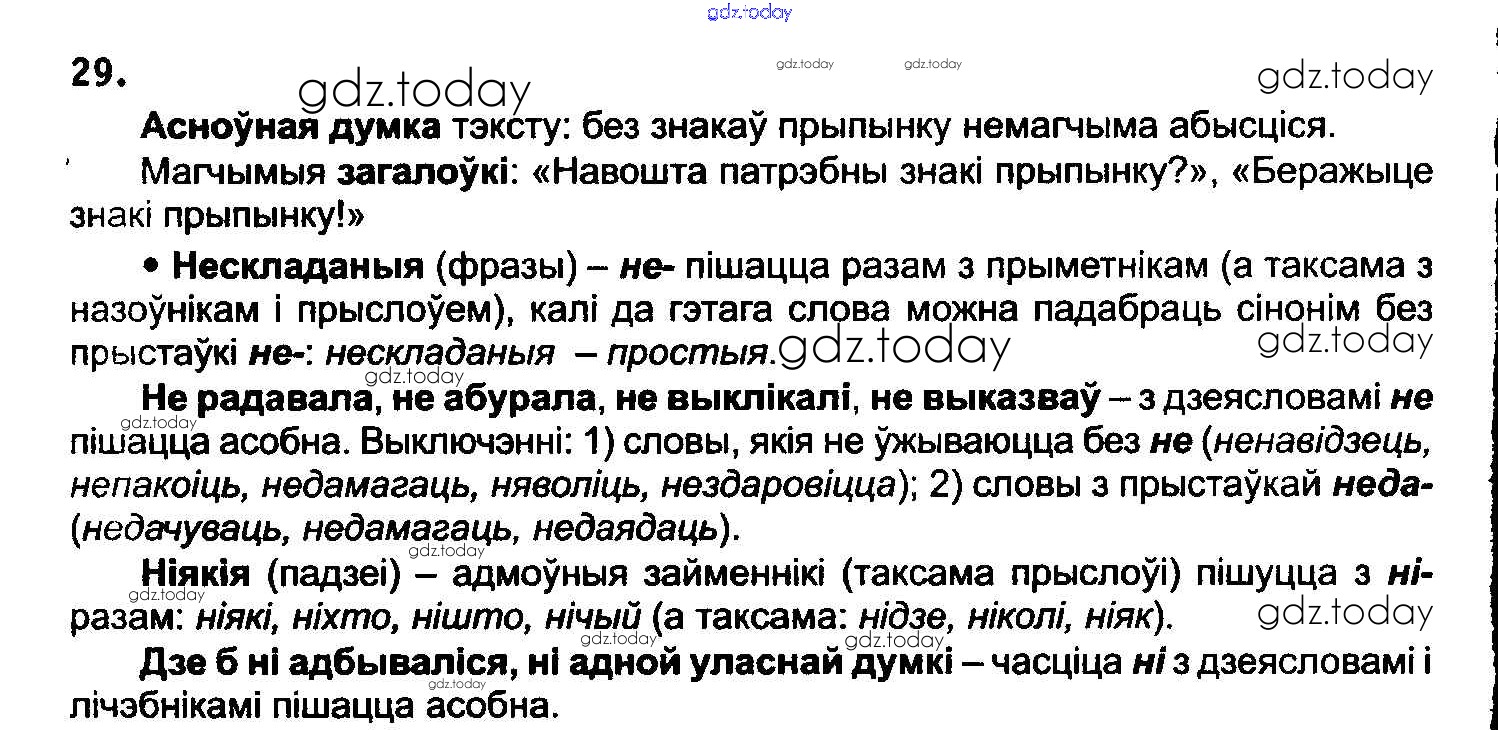 На страницах сайта gdz.today вы найдете учебный и вспомогательный материал, направленный на улучшения знаний школьной программы. ГДЗ - онлайн мир знаний Рашальнік да практыкаванняў 29 Учебнику по Белорусскому языку для 8 класса Бадзевіч, Саматыя Национальный институт образования 2015