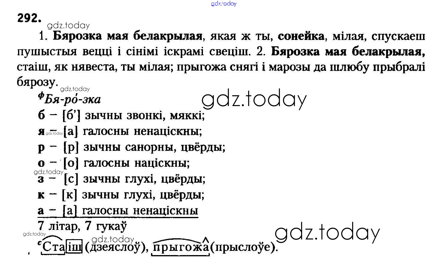 На страницах сайта gdz.today вы найдете учебный и вспомогательный материал, направленный на улучшения знаний школьной программы. ГДЗ - онлайн мир знаний Рашальнік да практыкаванняў 292 Учебнику по Белорусскому языку для 8 класса Бадзевіч, Саматыя Национальный институт образования 2015