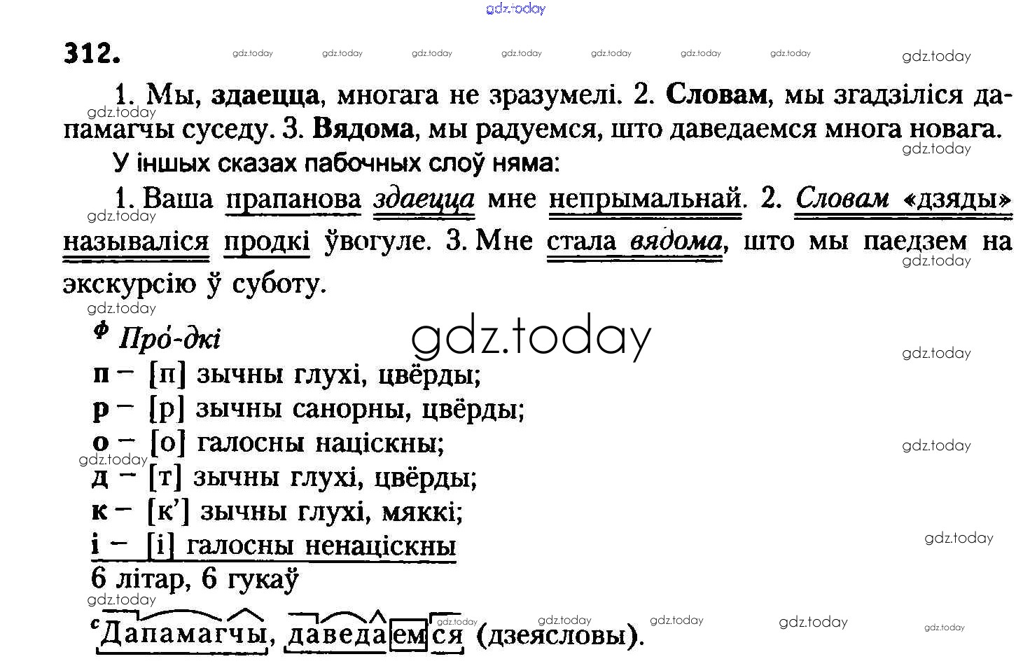 На страницах сайта gdz.today вы найдете учебный и вспомогательный материал, направленный на улучшения знаний школьной программы. ГДЗ - онлайн мир знаний Рашальнік да практыкаванняў 312 Учебнику по Белорусскому языку для 8 класса Бадзевіч, Саматыя Национальный институт образования 2015