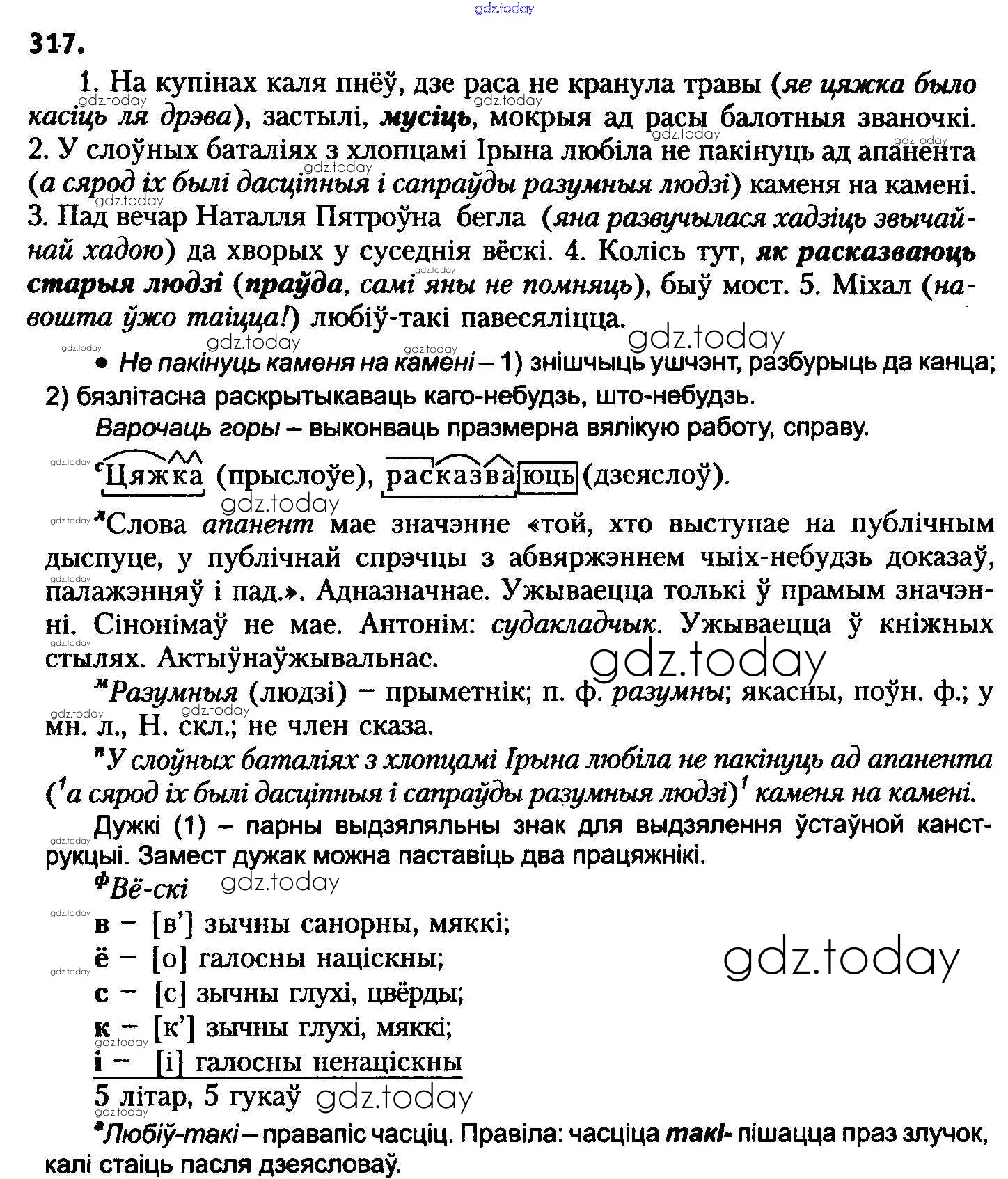 На страницах сайта gdz.today вы найдете учебный и вспомогательный материал, направленный на улучшения знаний школьной программы. ГДЗ - онлайн мир знаний Рашальнік да практыкаванняў 317 Учебнику по Белорусскому языку для 8 класса Бадзевіч, Саматыя Национальный институт образования 2015