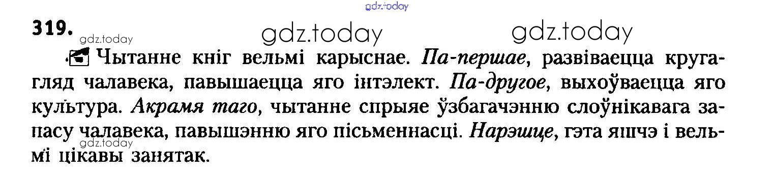 На страницах сайта gdz.today вы найдете учебный и вспомогательный материал, направленный на улучшения знаний школьной программы. ГДЗ - онлайн мир знаний Рашальнік да практыкаванняў 319 Учебнику по Белорусскому языку для 8 класса Бадзевіч, Саматыя Национальный институт образования 2015