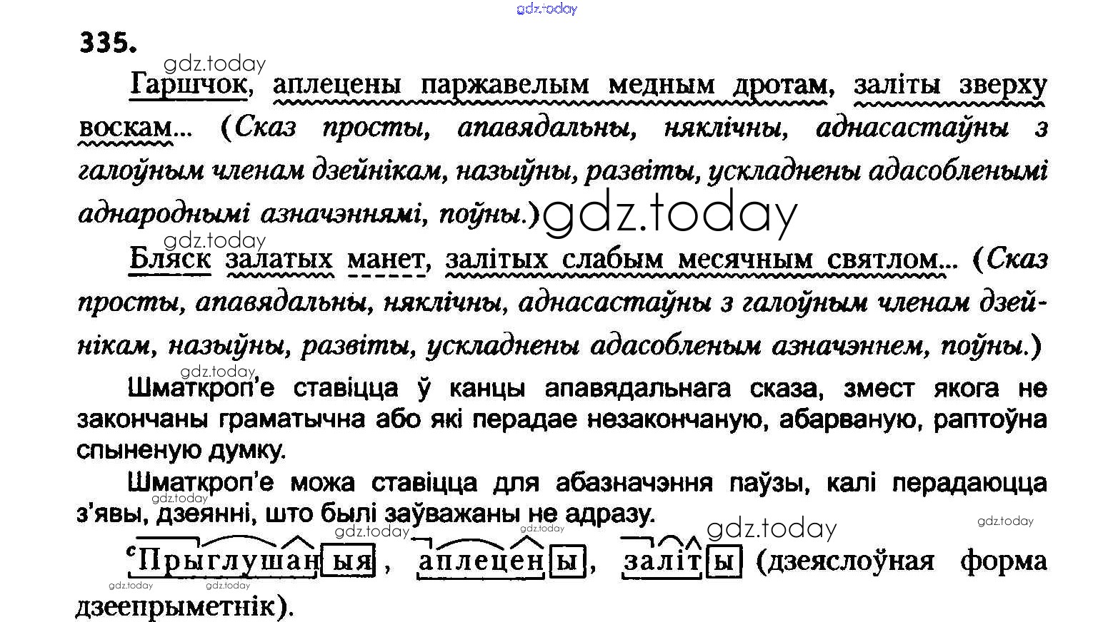 На страницах сайта gdz.today вы найдете учебный и вспомогательный материал, направленный на улучшения знаний школьной программы. ГДЗ - онлайн мир знаний Рашальнік да практыкаванняў 335 Учебнику по Белорусскому языку для 8 класса Бадзевіч, Саматыя Национальный институт образования 2015