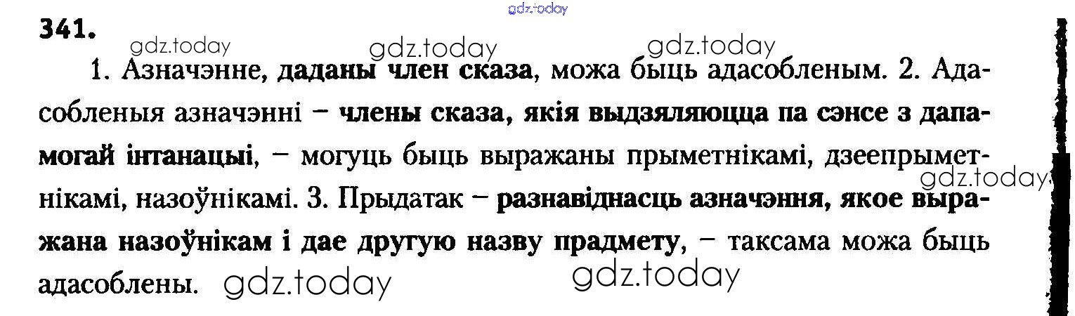 На страницах сайта gdz.today вы найдете учебный и вспомогательный материал, направленный на улучшения знаний школьной программы. ГДЗ - онлайн мир знаний Рашальнік да практыкаванняў 341 Учебнику по Белорусскому языку для 8 класса Бадзевіч, Саматыя Национальный институт образования 2015