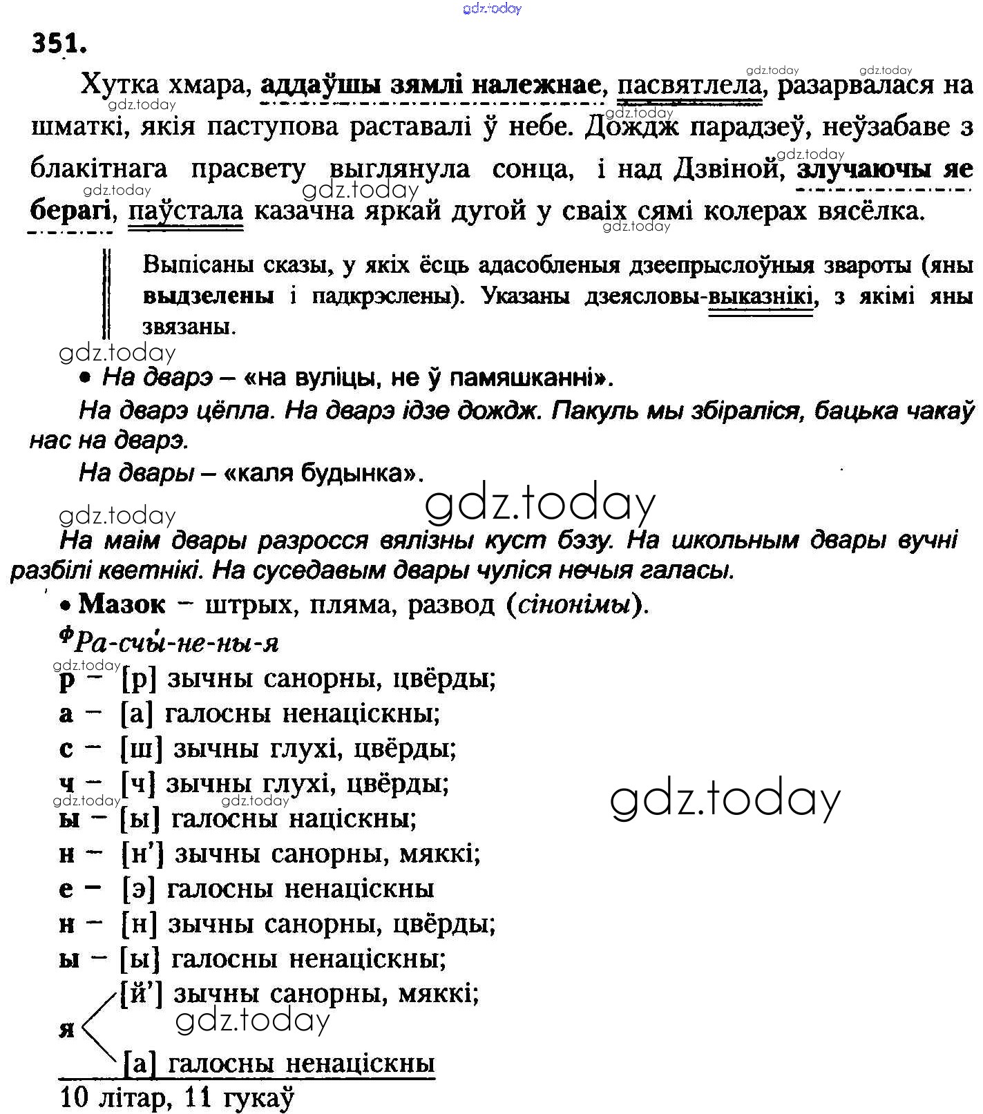 На страницах сайта gdz.today вы найдете учебный и вспомогательный материал, направленный на улучшения знаний школьной программы. ГДЗ - онлайн мир знаний Рашальнік да практыкаванняў 351 Учебнику по Белорусскому языку для 8 класса Бадзевіч, Саматыя Национальный институт образования 2015