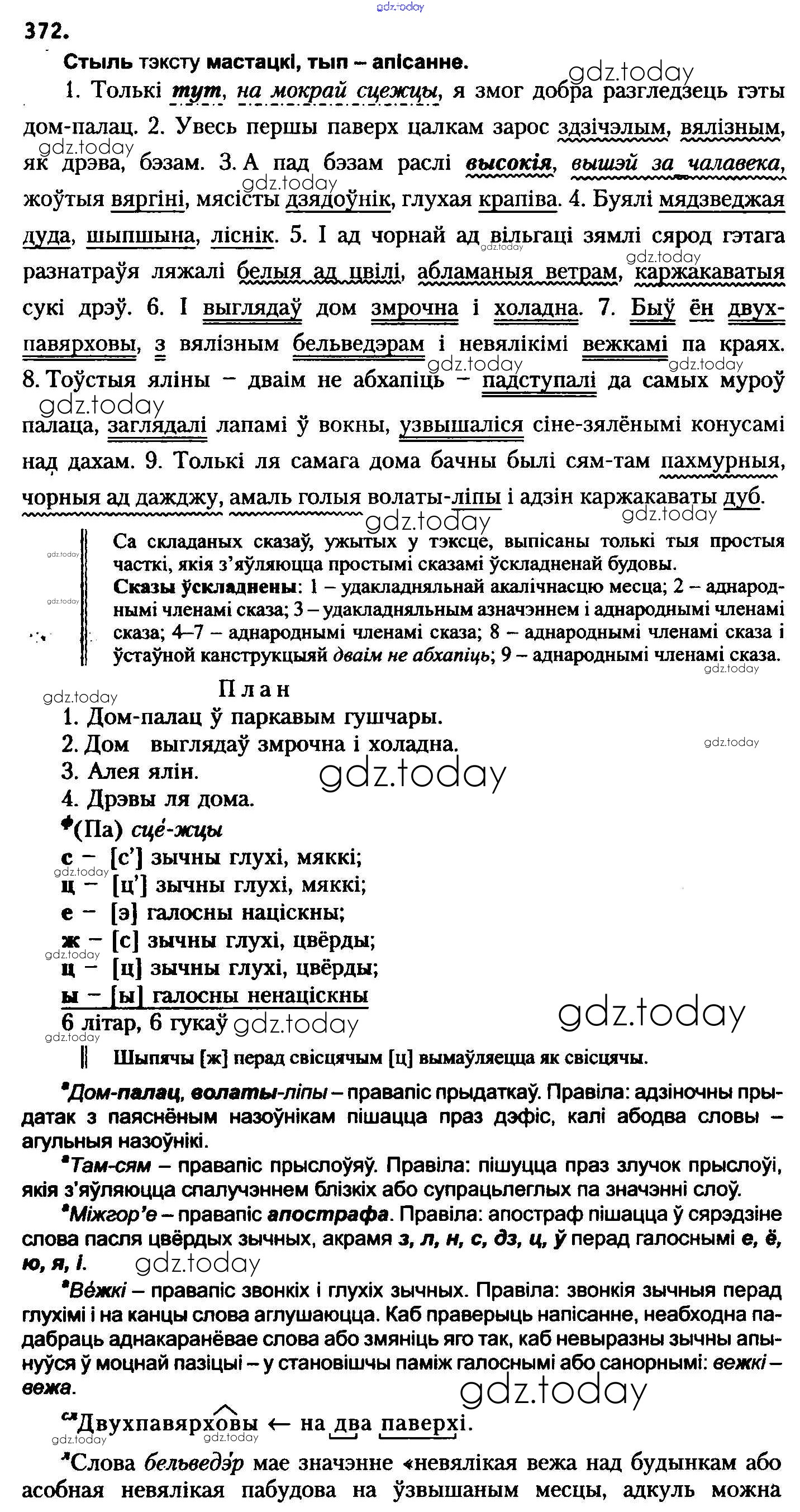 Ответы к Рашальнік да практыкаванняў 372 Учебнику по Белорусскому языку для 8 класса Бадзевіч, Саматыя Национальный институт образования 2015