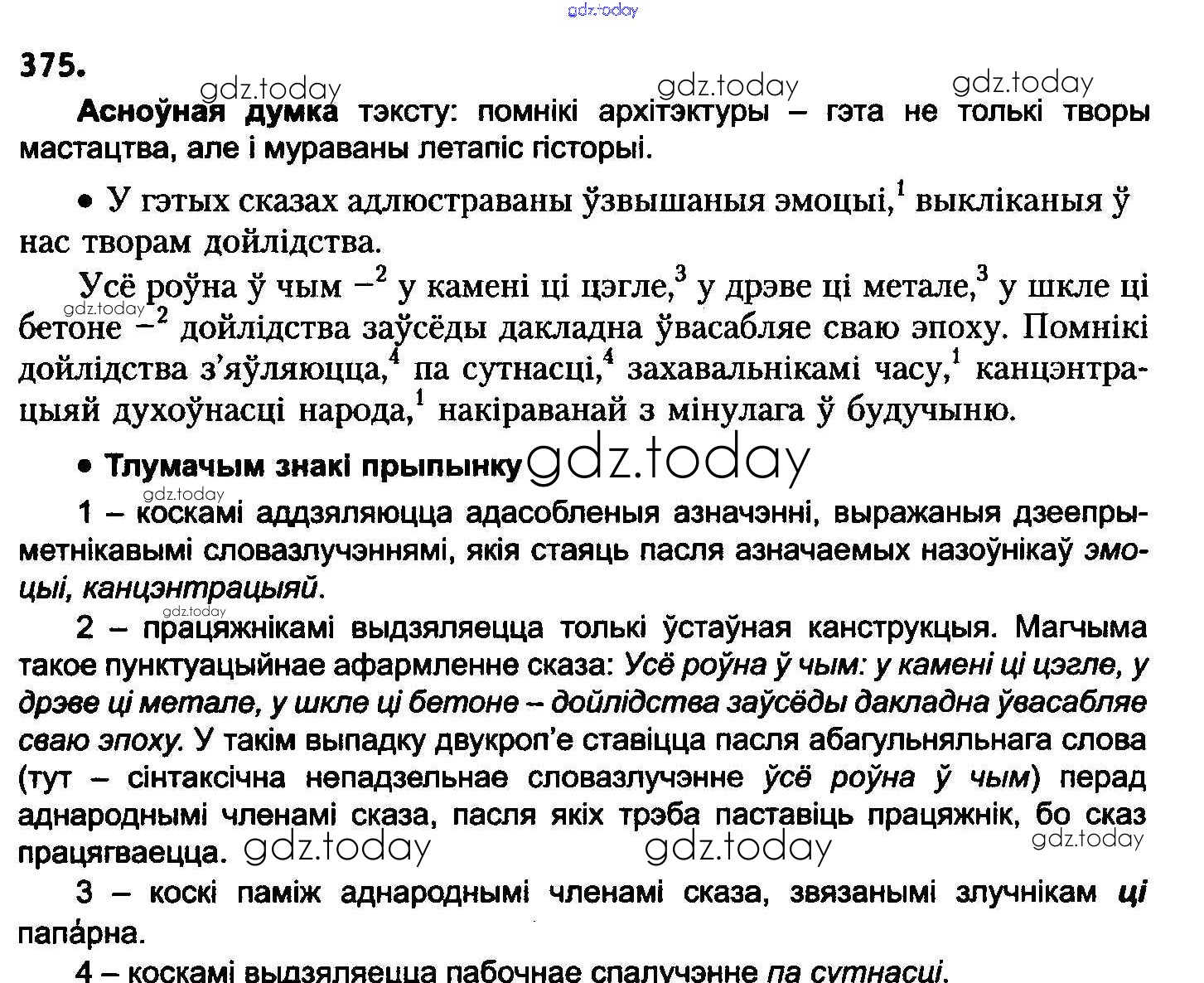 На страницах сайта gdz.today вы найдете учебный и вспомогательный материал, направленный на улучшения знаний школьной программы. ГДЗ - онлайн мир знаний Рашальнік да практыкаванняў 375 Учебнику по Белорусскому языку для 8 класса Бадзевіч, Саматыя Национальный институт образования 2015