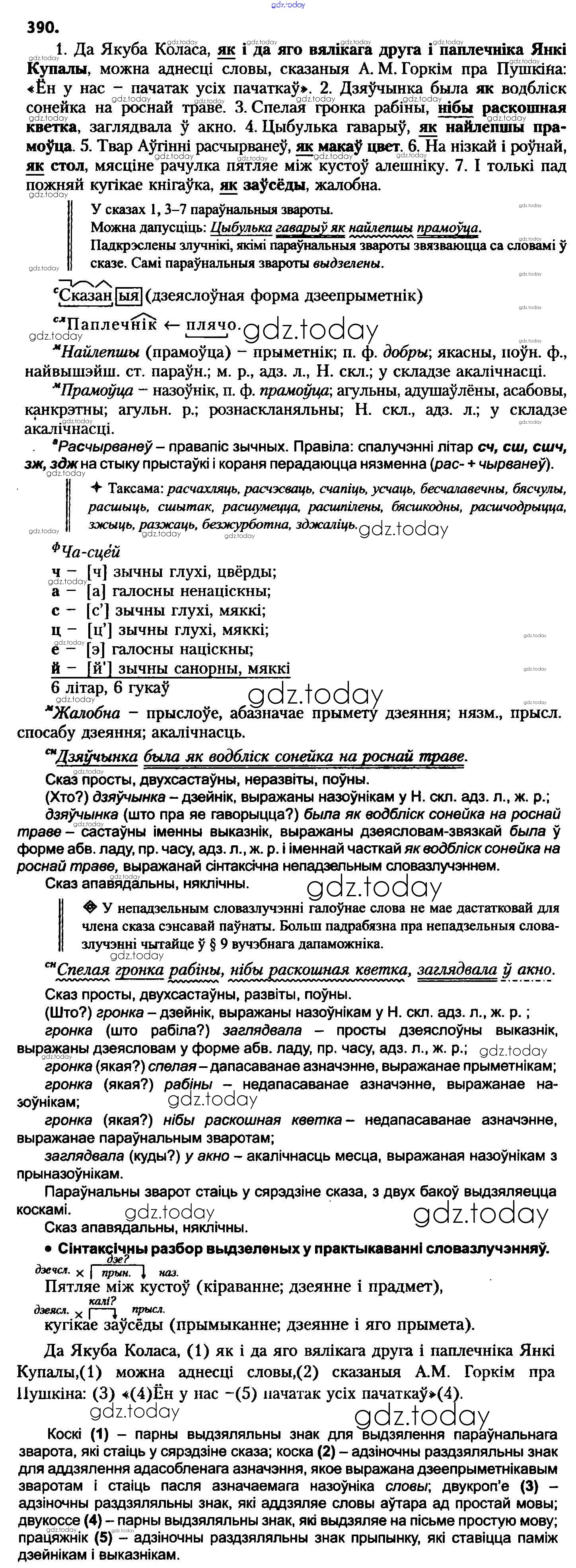 Ответы к Рашальнік да практыкаванняў 390 Учебнику по Белорусскому языку для 8 класса Бадзевіч, Саматыя Национальный институт образования 2015