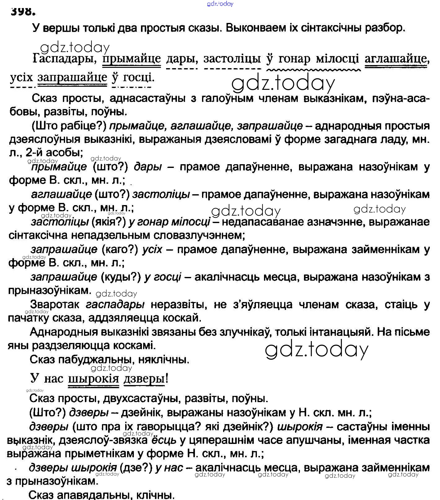 Ответы к Рашальнік да практыкаванняў 398 Учебнику по Белорусскому языку для 8 класса Бадзевіч, Саматыя Национальный институт образования 2015