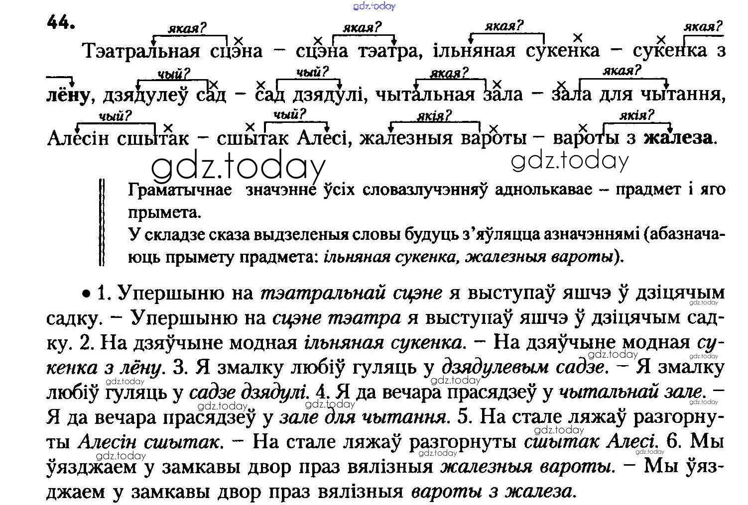 На страницах сайта gdz.today вы найдете учебный и вспомогательный материал, направленный на улучшения знаний школьной программы. ГДЗ - онлайн мир знаний Рашальнік да практыкаванняў 44 Учебнику по Белорусскому языку для 8 класса Бадзевіч, Саматыя Национальный институт образования 2015