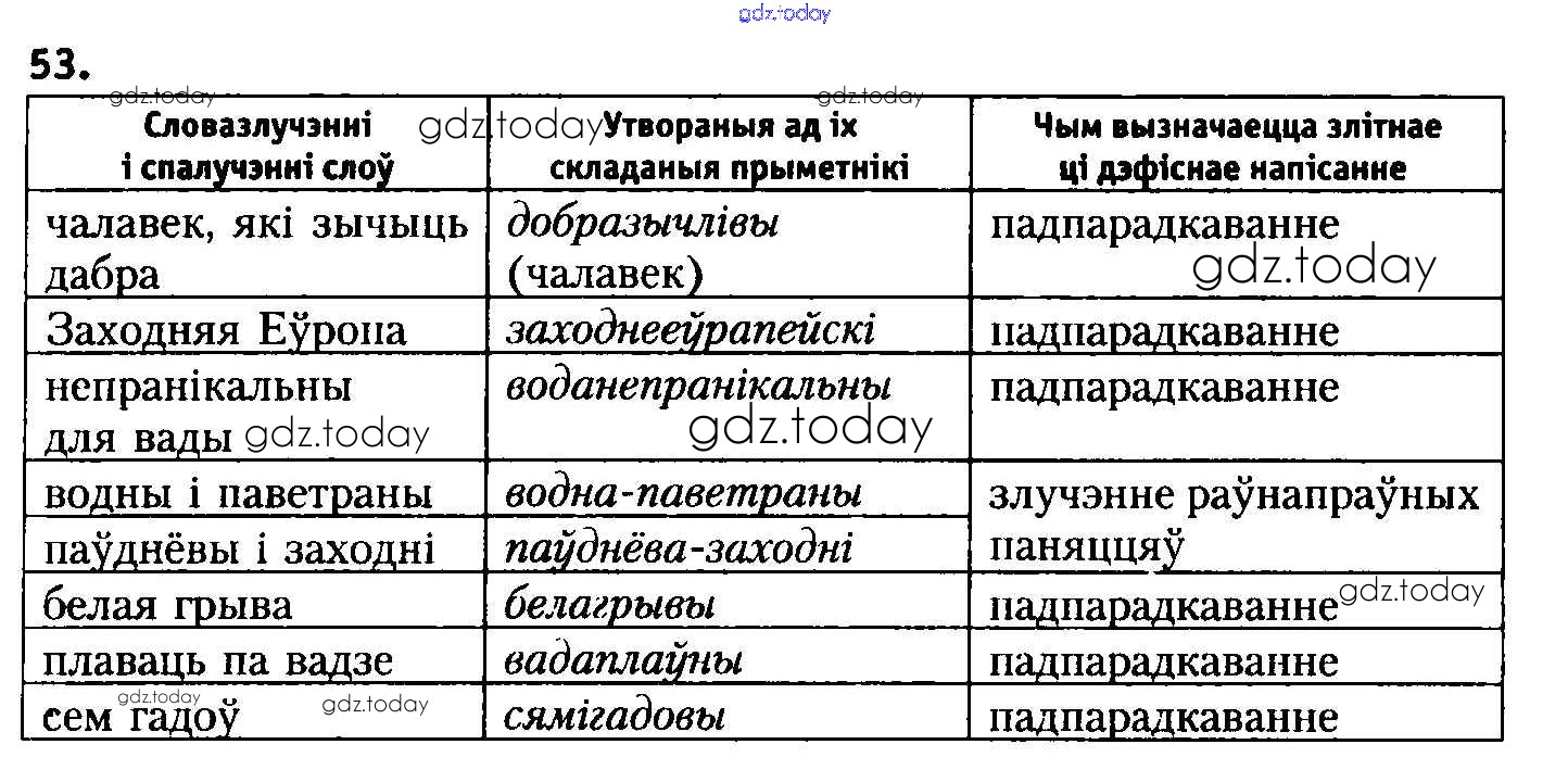 На страницах сайта gdz.today вы найдете учебный и вспомогательный материал, направленный на улучшения знаний школьной программы. ГДЗ - онлайн мир знаний Рашальнік да практыкаванняў 53 Учебнику по Белорусскому языку для 8 класса Бадзевіч, Саматыя Национальный институт образования 2015