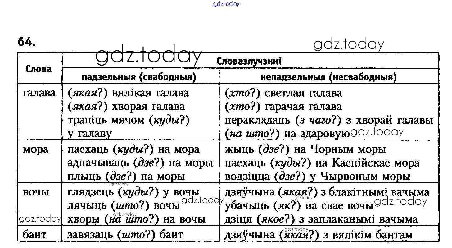 На страницах сайта gdz.today вы найдете учебный и вспомогательный материал, направленный на улучшения знаний школьной программы. ГДЗ - онлайн мир знаний Рашальнік да практыкаванняў 64 Учебнику по Белорусскому языку для 8 класса Бадзевіч, Саматыя Национальный институт образования 2015