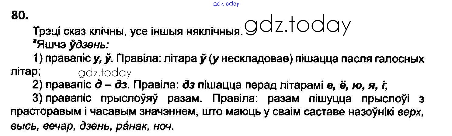 На страницах сайта gdz.today вы найдете учебный и вспомогательный материал, направленный на улучшения знаний школьной программы. ГДЗ - онлайн мир знаний Рашальнік да практыкаванняў 80 Учебнику по Белорусскому языку для 8 класса Бадзевіч, Саматыя Национальный институт образования 2015