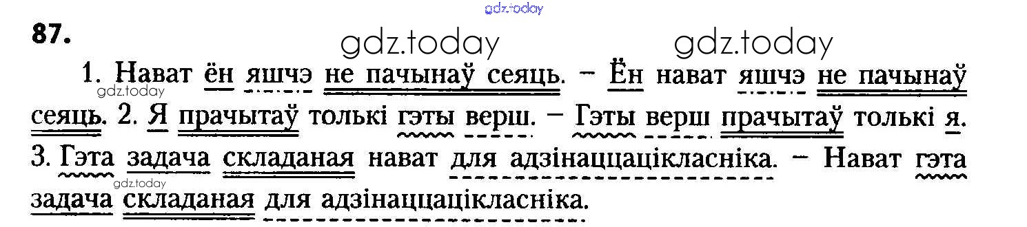 На страницах сайта gdz.today вы найдете учебный и вспомогательный материал, направленный на улучшения знаний школьной программы. ГДЗ - онлайн мир знаний Рашальнік да практыкаванняў 87 Учебнику по Белорусскому языку для 8 класса Бадзевіч, Саматыя Национальный институт образования 2015