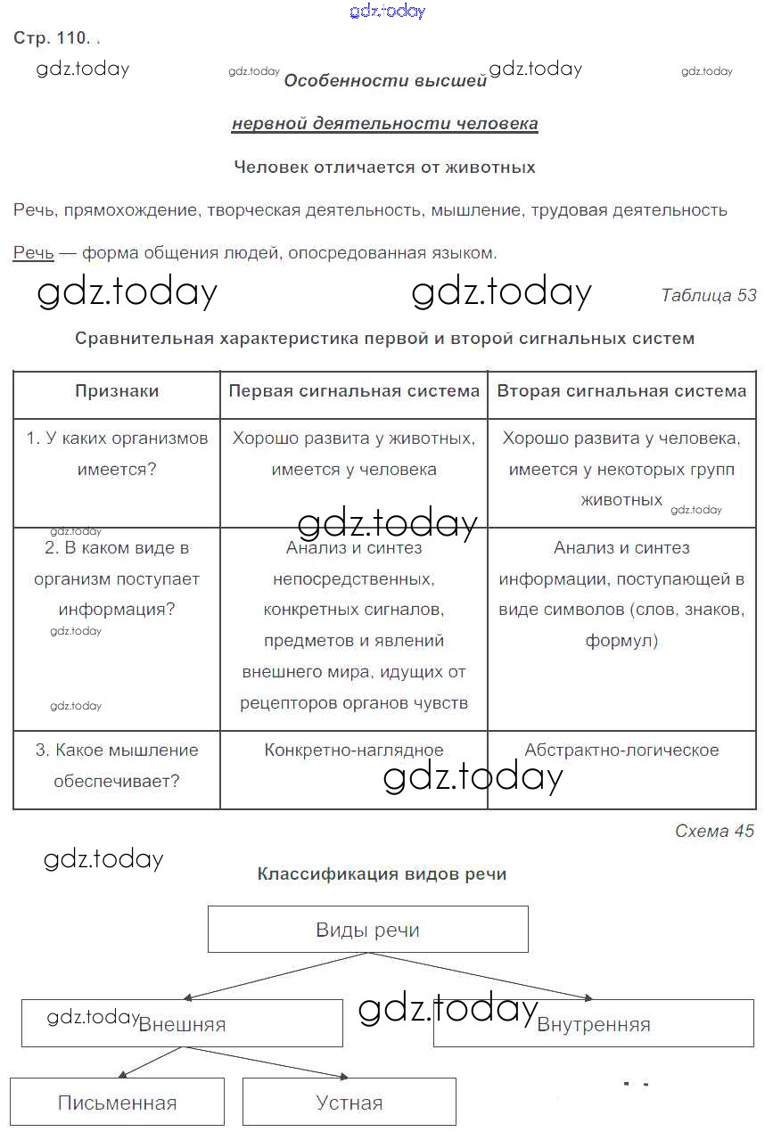 Ответы к Страницы (решение) 110 Рабочей тетради по Биологии для 8 класса Бодрова М-книга 2017