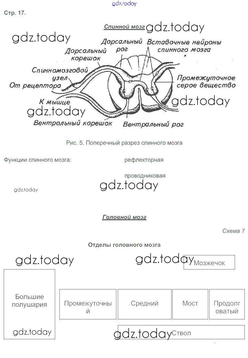 На страницах сайта gdz.today вы найдете учебный и вспомогательный материал, направленный на улучшения знаний школьной программы. ГДЗ - онлайн мир знаний Страницы (решение) 17 Рабочей тетради по Биологии для 8 класса Бодрова М-книга 2017