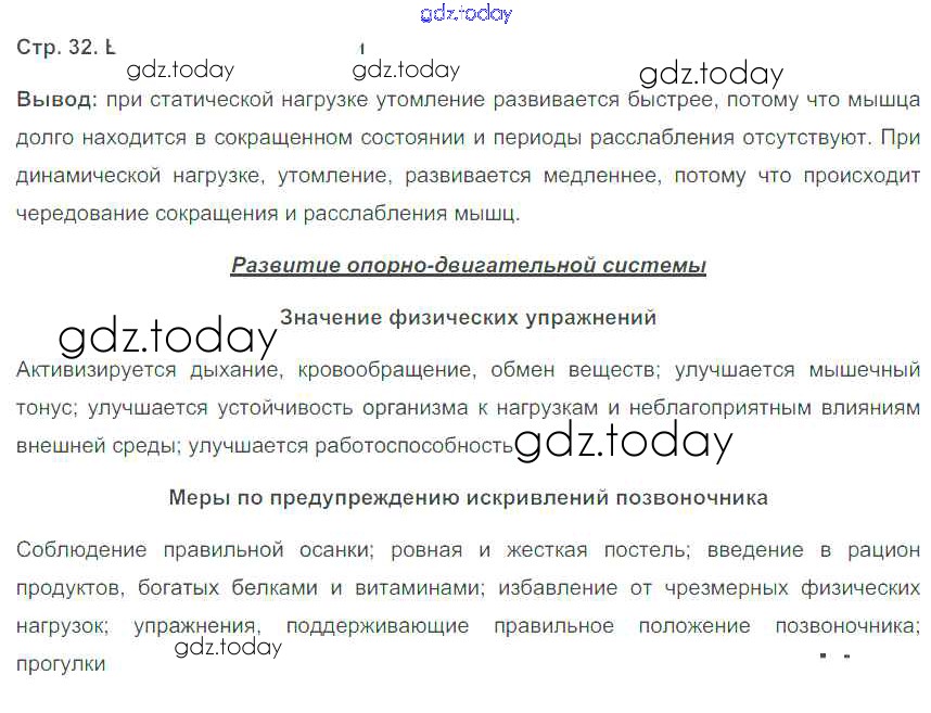 На страницах сайта gdz.today вы найдете учебный и вспомогательный материал, направленный на улучшения знаний школьной программы. ГДЗ - онлайн мир знаний Страницы (решение) 32 Рабочей тетради по Биологии для 8 класса Бодрова М-книга 2017