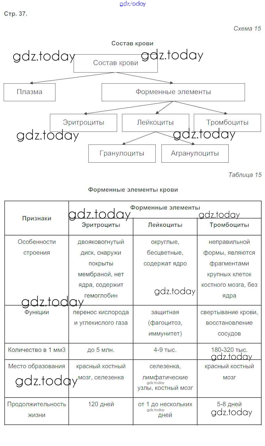 Ответы к Страницы (решение) 37 Рабочей тетради по Биологии для 8 класса Бодрова М-книга 2017
