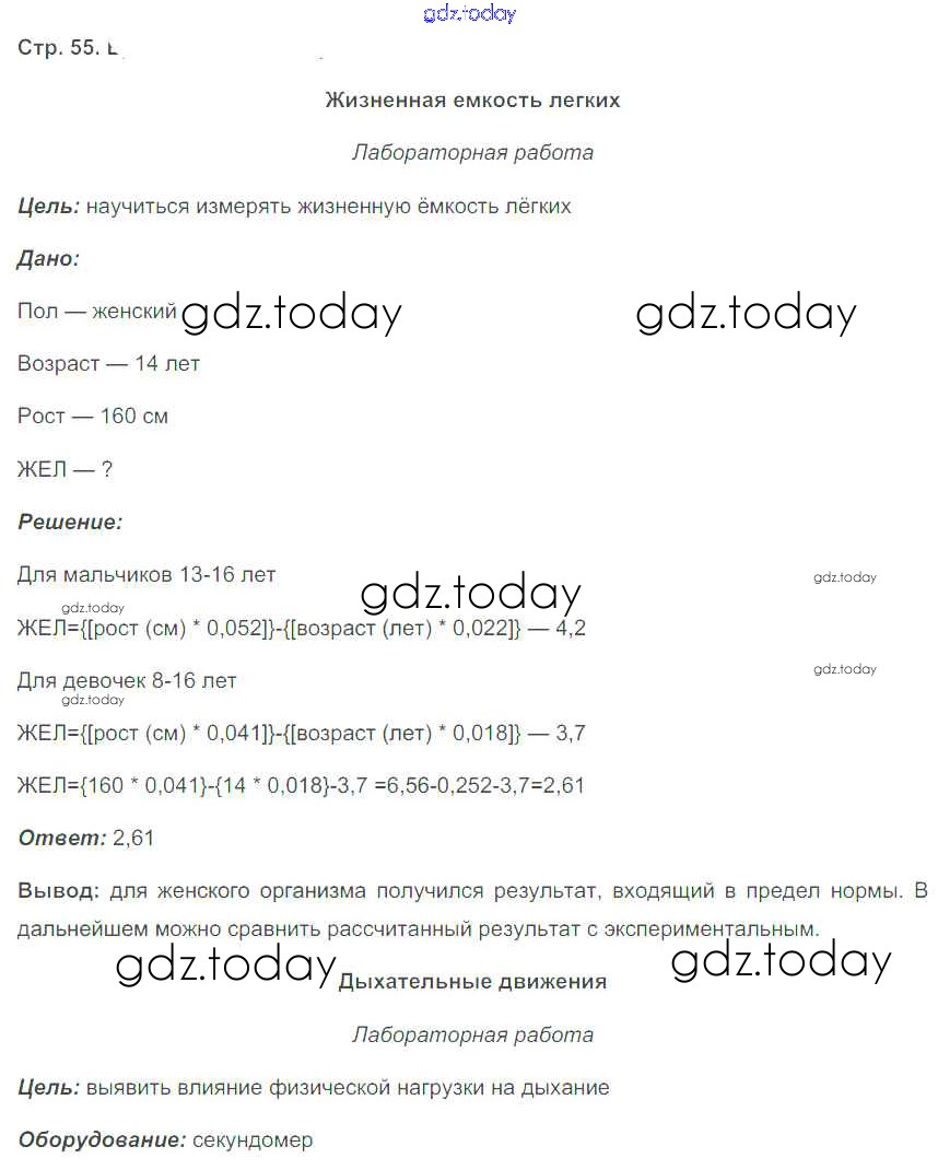 Ответы к Страницы (решение) 55 Рабочей тетради по Биологии для 8 класса Бодрова М-книга 2017