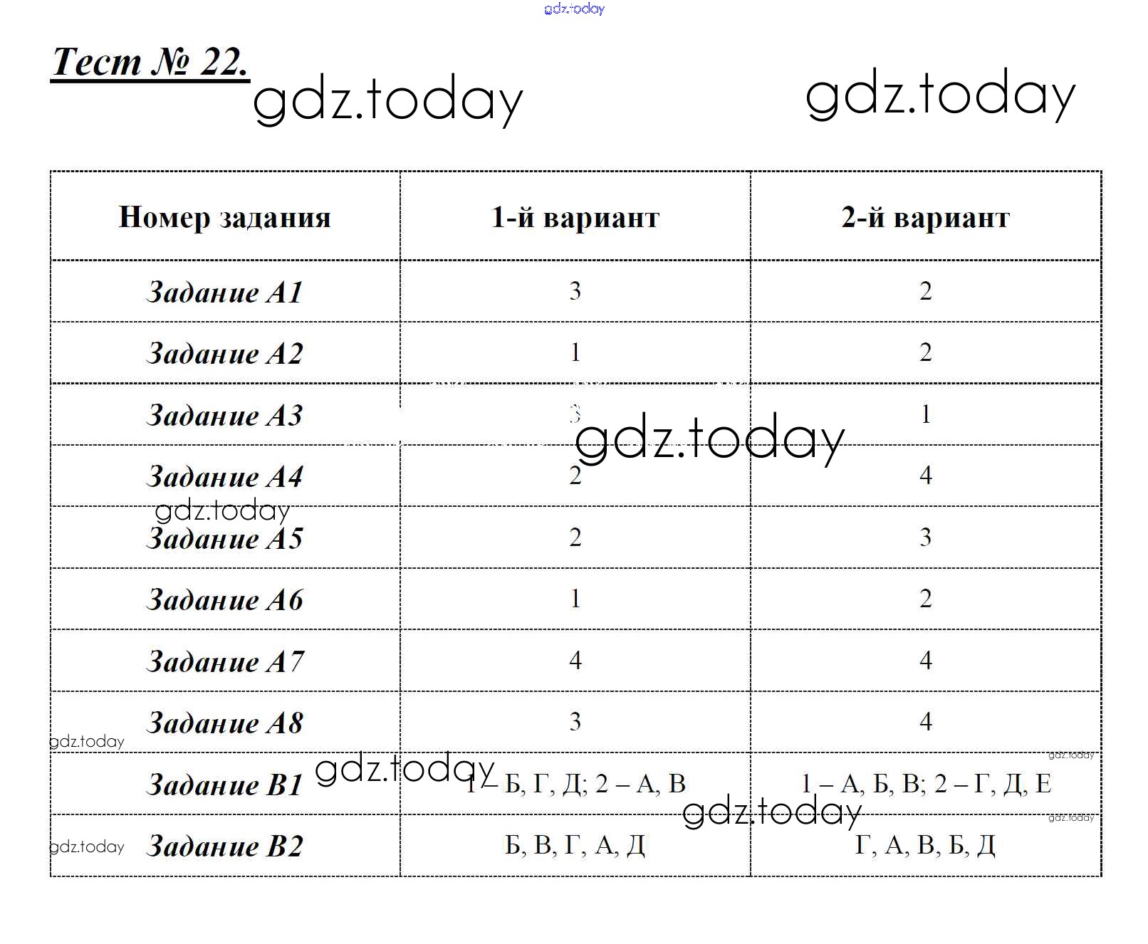 Ответы к Решение к тестам Тест 22. Значение нервной системы. Строение и функции спинного и головного мозга Контрольно-измерительным материалам (КИМ) по Биологии для 8 класса Богданов ВАКО 2017