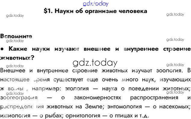 На страницах сайта gdz.today вы найдете учебный и вспомогательный материал, направленный на улучшения знаний школьной программы. ГДЗ - онлайн мир знаний §1 Решение к главе 1 Вспомним Учебнику по Биологии для 8 класса Драгомилов, Маш Просвещение Алгоритм успеха 2022