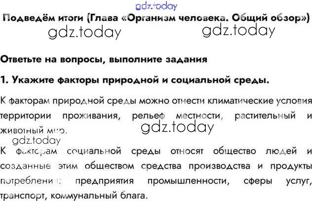 На страницах сайта gdz.today вы найдете учебный и вспомогательный материал, направленный на улучшения знаний школьной программы. ГДЗ - онлайн мир знаний Подведём итоги Решение к главе 1 1 Учебнику по Биологии для 8 класса Драгомилов, Маш Просвещение Алгоритм успеха 2022