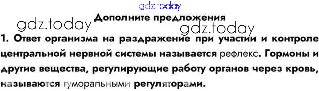 На страницах сайта gdz.today вы найдете учебный и вспомогательный материал, направленный на улучшения знаний школьной программы. ГДЗ - онлайн мир знаний Дополните предложения Решение к главе 2 1 Учебнику по Биологии для 8 класса Драгомилов, Маш Просвещение Алгоритм успеха 2022