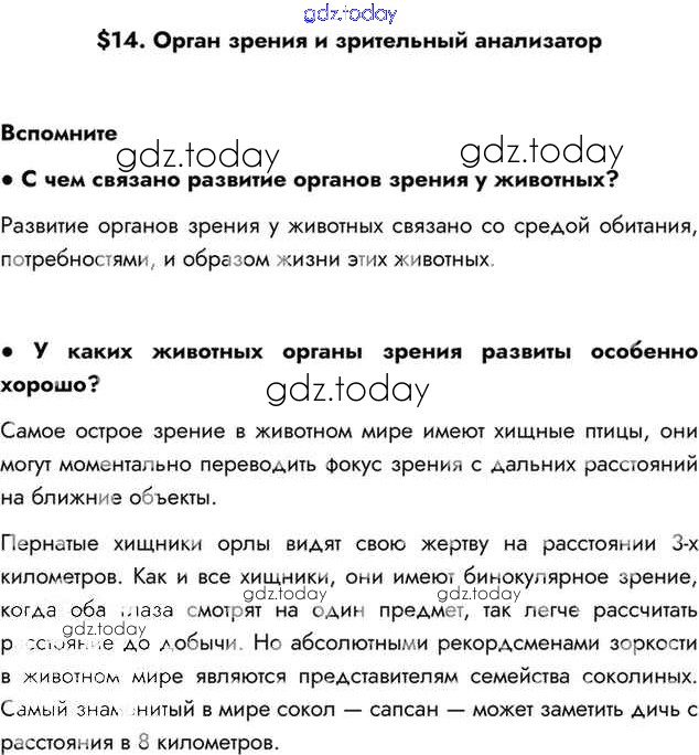 На страницах сайта gdz.today вы найдете учебный и вспомогательный материал, направленный на улучшения знаний школьной программы. ГДЗ - онлайн мир знаний §14 Решение к главе 3 Вспомним Учебнику по Биологии для 8 класса Драгомилов, Маш Просвещение Алгоритм успеха 2022