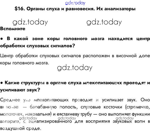 На страницах сайта gdz.today вы найдете учебный и вспомогательный материал, направленный на улучшения знаний школьной программы. ГДЗ - онлайн мир знаний §16 Решение к главе 3 Вспомним Учебнику по Биологии для 8 класса Драгомилов, Маш Просвещение Алгоритм успеха 2022