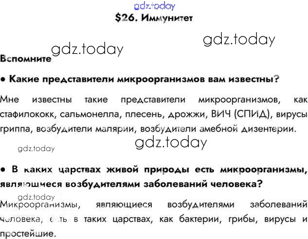 На страницах сайта gdz.today вы найдете учебный и вспомогательный материал, направленный на улучшения знаний школьной программы. ГДЗ - онлайн мир знаний §26 Решение к главе 5 Вспомним Учебнику по Биологии для 8 класса Драгомилов, Маш Просвещение Алгоритм успеха 2022