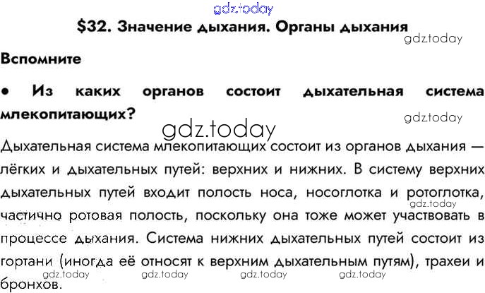 На страницах сайта gdz.today вы найдете учебный и вспомогательный материал, направленный на улучшения знаний школьной программы. ГДЗ - онлайн мир знаний §32 Решение к главе 6 Вспомним Учебнику по Биологии для 8 класса Драгомилов, Маш Просвещение Алгоритм успеха 2022