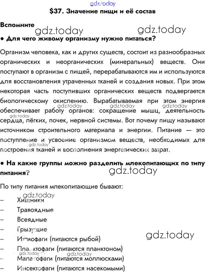 На страницах сайта gdz.today вы найдете учебный и вспомогательный материал, направленный на улучшения знаний школьной программы. ГДЗ - онлайн мир знаний §37 Решение к главе 7 Вспомним Учебнику по Биологии для 8 класса Драгомилов, Маш Просвещение Алгоритм успеха 2022