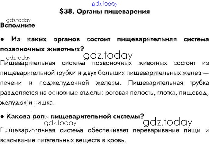 На страницах сайта gdz.today вы найдете учебный и вспомогательный материал, направленный на улучшения знаний школьной программы. ГДЗ - онлайн мир знаний §38 Решение к главе 7 Вспомним Учебнику по Биологии для 8 класса Драгомилов, Маш Просвещение Алгоритм успеха 2022