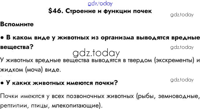 На страницах сайта gdz.today вы найдете учебный и вспомогательный материал, направленный на улучшения знаний школьной программы. ГДЗ - онлайн мир знаний §46 Решение к главе 9 Вспомним Учебнику по Биологии для 8 класса Драгомилов, Маш Просвещение Алгоритм успеха 2022