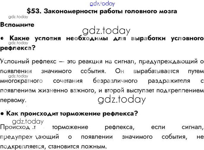 На страницах сайта gdz.today вы найдете учебный и вспомогательный материал, направленный на улучшения знаний школьной программы. ГДЗ - онлайн мир знаний §53 Решение к главе 10 Вспомним Учебнику по Биологии для 8 класса Драгомилов, Маш Просвещение Алгоритм успеха 2022