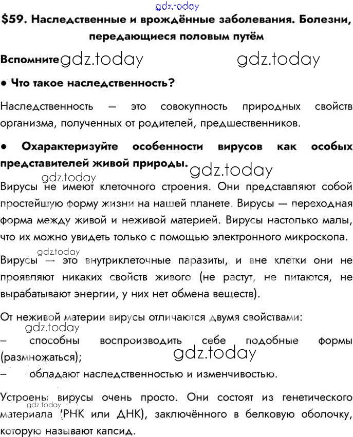 На страницах сайта gdz.today вы найдете учебный и вспомогательный материал, направленный на улучшения знаний школьной программы. ГДЗ - онлайн мир знаний §59 Решение к главе 11 Вспомним Учебнику по Биологии для 8 класса Драгомилов, Маш Просвещение Алгоритм успеха 2022