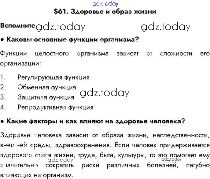 На страницах сайта gdz.today вы найдете учебный и вспомогательный материал, направленный на улучшения знаний школьной программы. ГДЗ - онлайн мир знаний §61 Решение к главе 12 Вспомним Учебнику по Биологии для 8 класса Драгомилов, Маш Просвещение Алгоритм успеха 2022