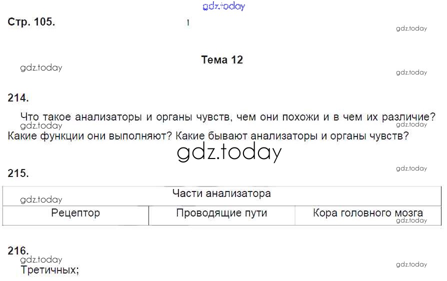 На страницах сайта gdz.today вы найдете учебный и вспомогательный материал, направленный на улучшения знаний школьной программы. ГДЗ - онлайн мир знаний Страницы (решение) 105 Рабочей тетради по Биологии для 8 класса Колесов, Маш Дрофа УМК 2018
