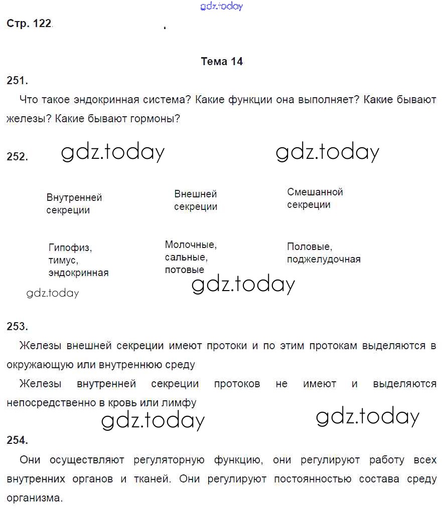 На страницах сайта gdz.today вы найдете учебный и вспомогательный материал, направленный на улучшения знаний школьной программы. ГДЗ - онлайн мир знаний Страницы (решение) 122 Рабочей тетради по Биологии для 8 класса Колесов, Маш Дрофа УМК 2018