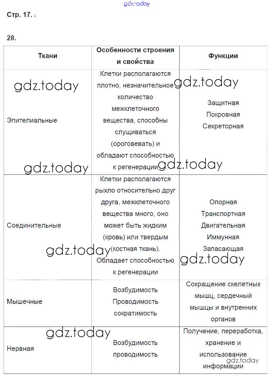 На страницах сайта gdz.today вы найдете учебный и вспомогательный материал, направленный на улучшения знаний школьной программы. ГДЗ - онлайн мир знаний Страницы (решение) 17 Рабочей тетради по Биологии для 8 класса Колесов, Маш Дрофа УМК 2018