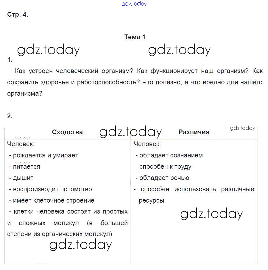 На страницах сайта gdz.today вы найдете учебный и вспомогательный материал, направленный на улучшения знаний школьной программы. ГДЗ - онлайн мир знаний Страницы (решение) 4 Рабочей тетради по Биологии для 8 класса Колесов, Маш Дрофа УМК 2018