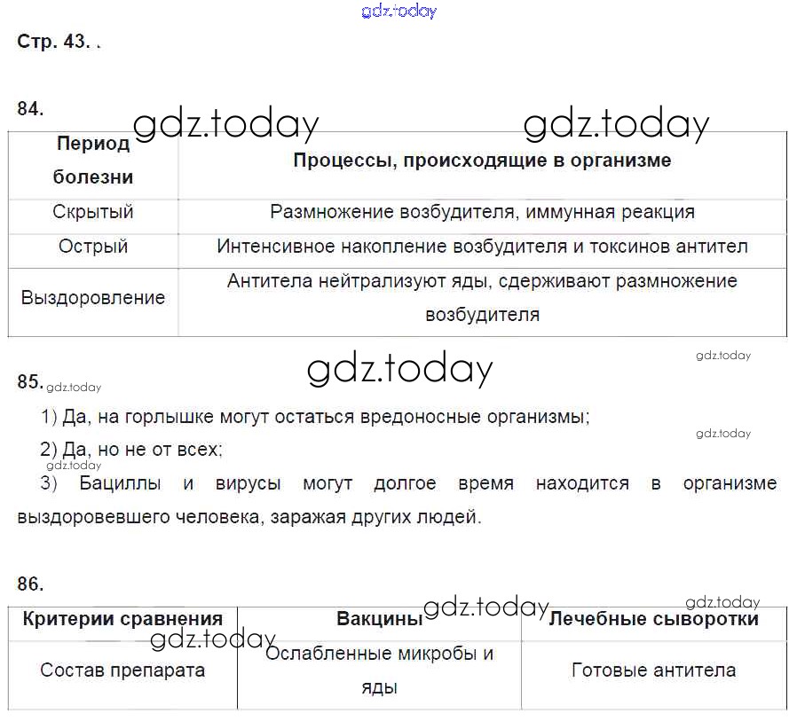 На страницах сайта gdz.today вы найдете учебный и вспомогательный материал, направленный на улучшения знаний школьной программы. ГДЗ - онлайн мир знаний Страницы (решение) 43 Рабочей тетради по Биологии для 8 класса Колесов, Маш Дрофа УМК 2018