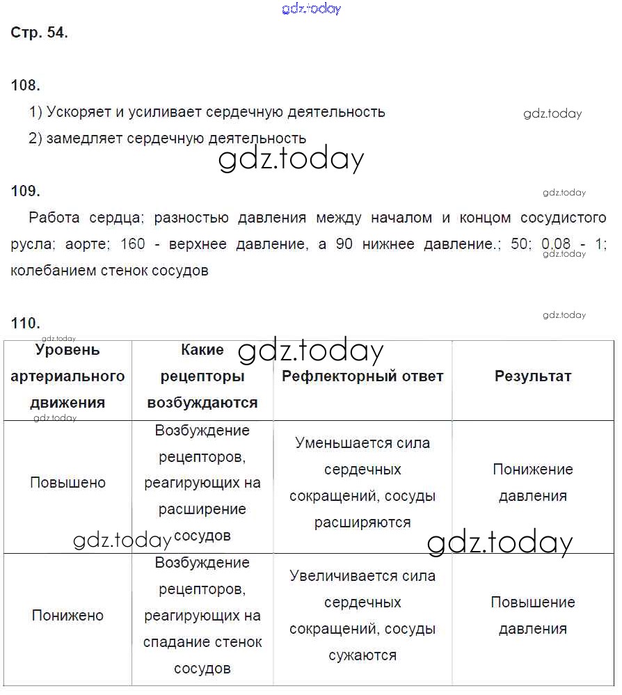 Ответы к Страницы (решение) 54 Рабочей тетради по Биологии для 8 класса Колесов, Маш Дрофа УМК 2018