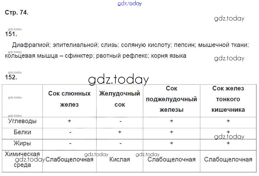 На страницах сайта gdz.today вы найдете учебный и вспомогательный материал, направленный на улучшения знаний школьной программы. ГДЗ - онлайн мир знаний Страницы (решение) 74 Рабочей тетради по Биологии для 8 класса Колесов, Маш Дрофа УМК 2018