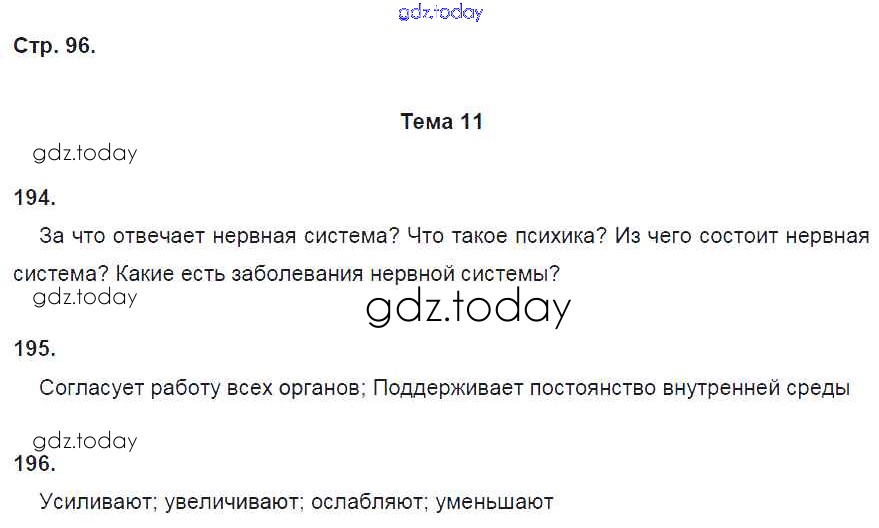 На страницах сайта gdz.today вы найдете учебный и вспомогательный материал, направленный на улучшения знаний школьной программы. ГДЗ - онлайн мир знаний Страницы (решение) 96 Рабочей тетради по Биологии для 8 класса Колесов, Маш Дрофа УМК 2018
