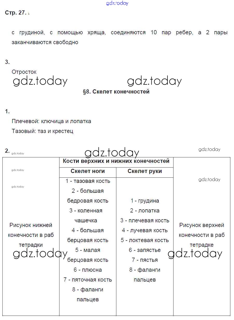 На страницах сайта gdz.today вы найдете учебный и вспомогательный материал, направленный на улучшения знаний школьной программы. ГДЗ - онлайн мир знаний Решение к части 1. Страницы 27 Рабочей тетради по Биологии для 8 класса Маш, Драгомилов Вентана-граф Алгоритм успеха 2019