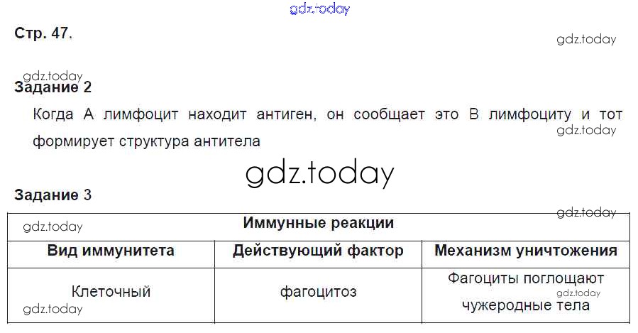 На страницах сайта gdz.today вы найдете учебный и вспомогательный материал, направленный на улучшения знаний школьной программы. ГДЗ - онлайн мир знаний Решение к части 1. Страницы 47 Рабочей тетради по Биологии для 8 класса Маш, Драгомилов Вентана-граф Алгоритм успеха 2019