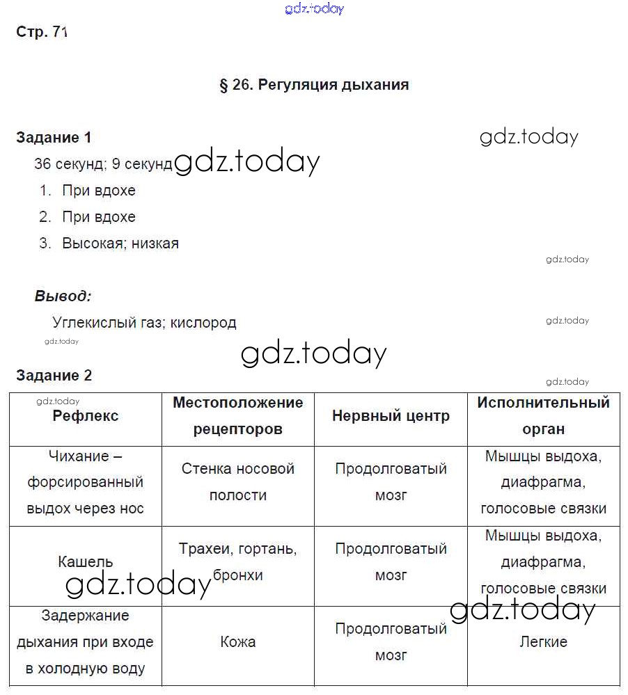 На страницах сайта gdz.today вы найдете учебный и вспомогательный материал, направленный на улучшения знаний школьной программы. ГДЗ - онлайн мир знаний Решение к части 1. Страницы 71 Рабочей тетради по Биологии для 8 класса Маш, Драгомилов Вентана-граф Алгоритм успеха 2019