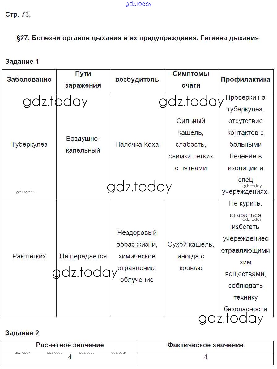 На страницах сайта gdz.today вы найдете учебный и вспомогательный материал, направленный на улучшения знаний школьной программы. ГДЗ - онлайн мир знаний Решение к части 1. Страницы 73 Рабочей тетради по Биологии для 8 класса Маш, Драгомилов Вентана-граф Алгоритм успеха 2019