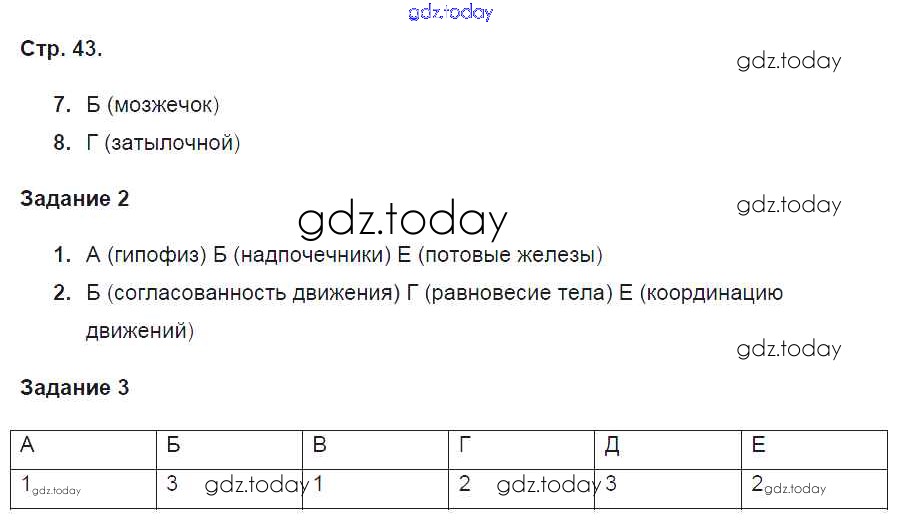 На страницах сайта gdz.today вы найдете учебный и вспомогательный материал, направленный на улучшения знаний школьной программы. ГДЗ - онлайн мир знаний Решение к части 2. Страницы 43 Рабочей тетради по Биологии для 8 класса Маш, Драгомилов Вентана-граф Алгоритм успеха 2019